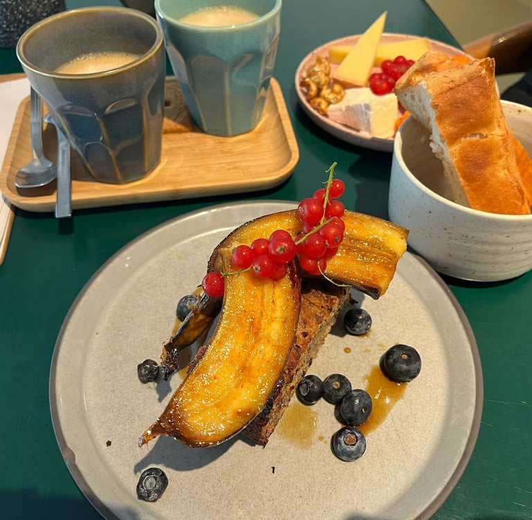 Voor wie lactosevrij eet, is er keuze genoeg: havermelk, sojamelk of kokosmelk staan altijd klaar. Wie glutenvrij wil genieten, kan zich uitleven met een breed aanbod: van granola en een mandje brood tot versgemaakt bananenbrood en zuurdesem avocado toast. Ook vegan liefhebbers komen niets tekort, met opties zoals een plant-based kaasbordje, vegan yoghurt of homemade taart.