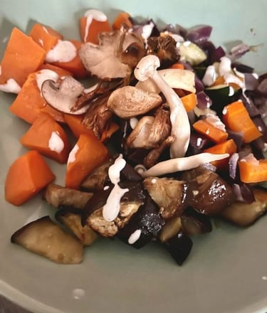 Een makkelijke ovenschotel met courgette, aubergine, zoete aardappel, wortel en paddenstoelen. Alles op één bakplaat, weinig werk, veel smaak. Deze versie is glutenvrij, lactosevrij, veggie én vegan.